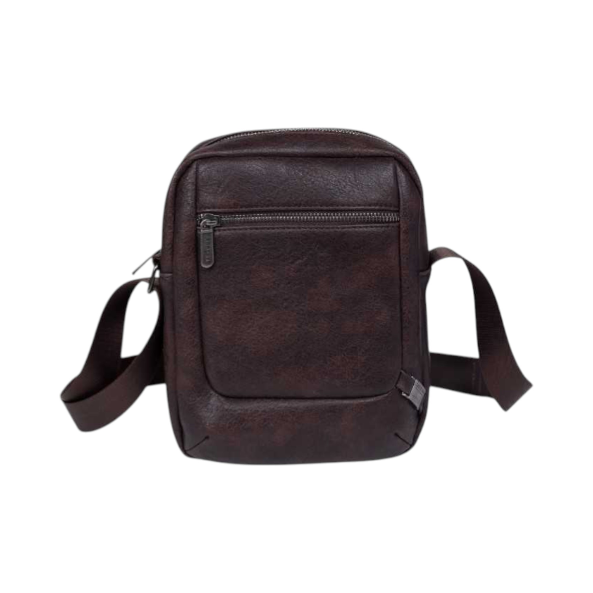Borsello in similpelle, tasca anteriore con zip, chiusura con zip, tracolla regolabile.