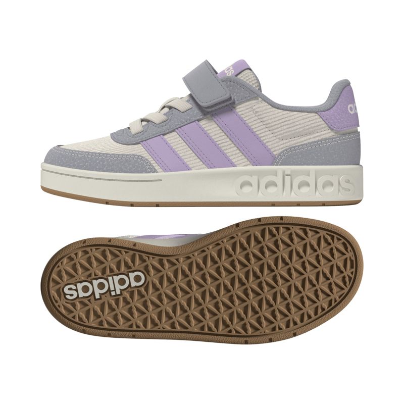 Sneakers in similpelle, linguetta con logo a contrasto, chiusura con lacci e fettuccia in velcro, punta tonda con fori traspiranti, 3 iconiche stripes laterali a contrasto, suola in gomma.