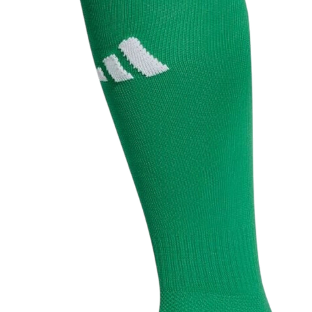 Le calze adidas Milano 23 sono pensate per offrire comfort e performance durante ogni partita. Realizzate in un morbido mix di cotone e poliestere, assicurano traspirabilità e aderenza ottimale. La colorazione verde con dettagli bianchi e il logo adidas completano un look sportivo e dinamico, perfetto per allenamenti e competizioni.