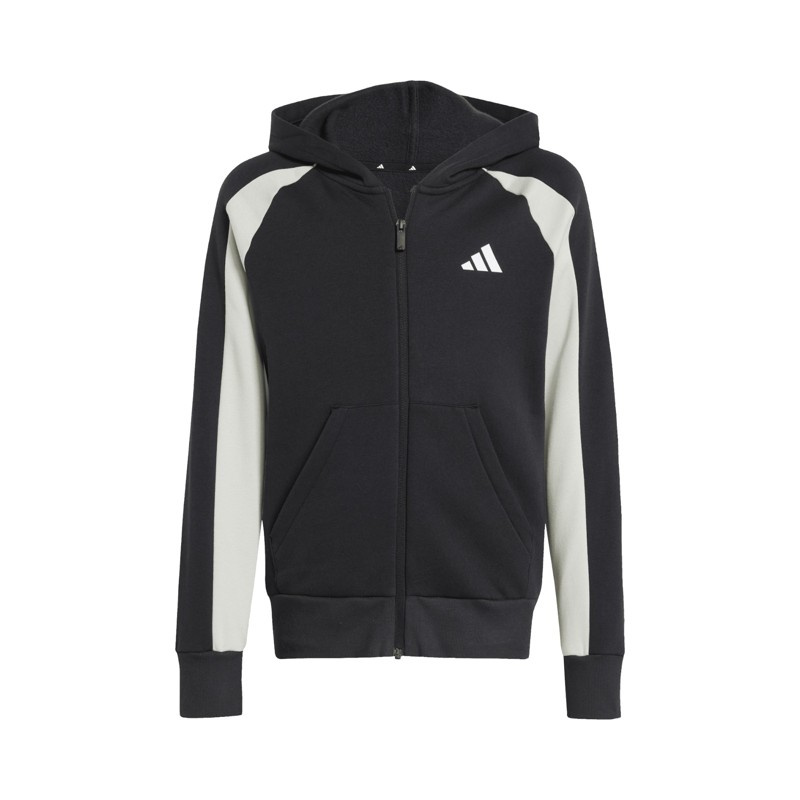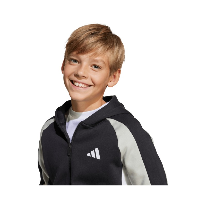 Tuta completa in cotone, felpa con cappuccio, spalle regolari, maniche lunghe, chiusura con zip e logo trifoglio a contrasto, tasca a marsupio, pantalone con vita regolare elasticizzata con coulisse, logo trifoglio a contrasto, gamba dritta, orlo dritto.