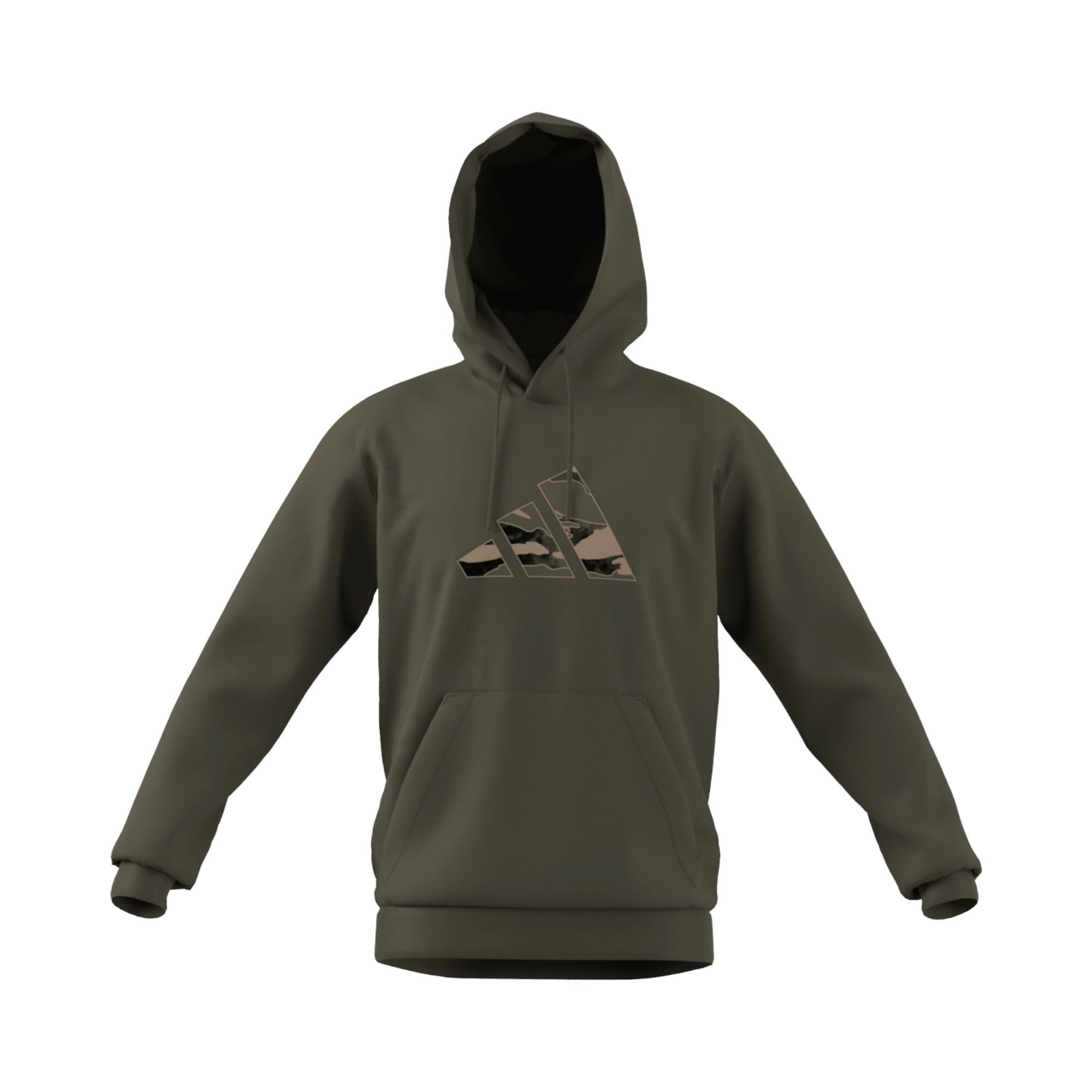 Felpa in cotone, collo con cappuccio e coulisse, spalle regolari, maniche lunghe, stampa logo trifoglio camouflage, tasca a marsupio, orlo dritto.