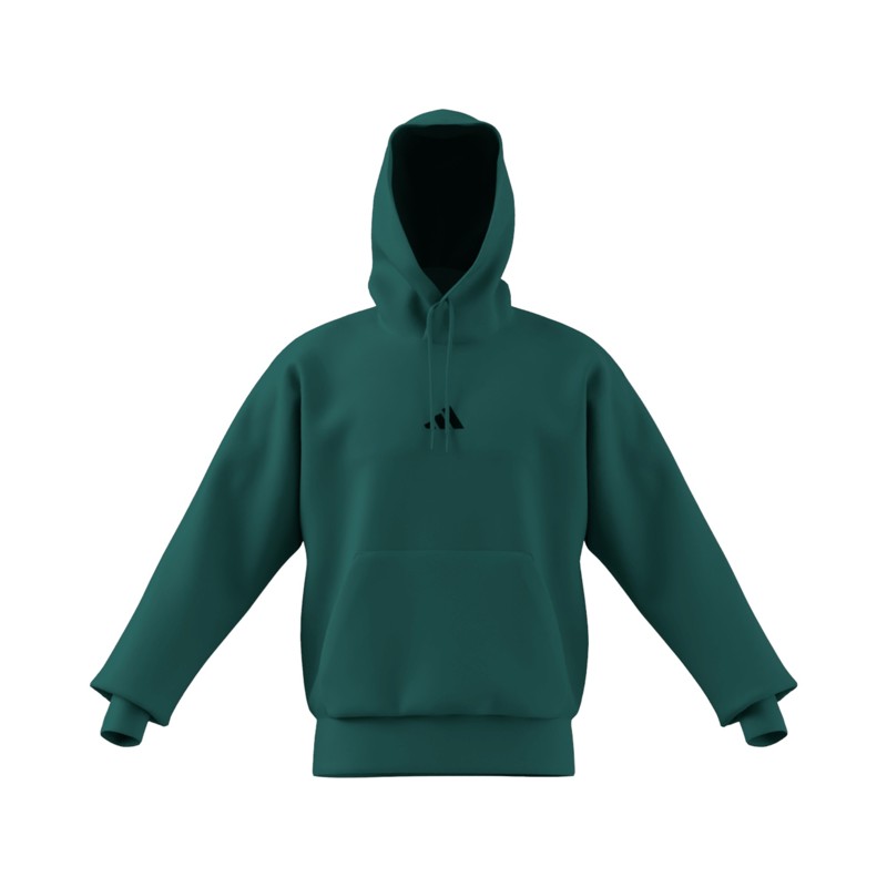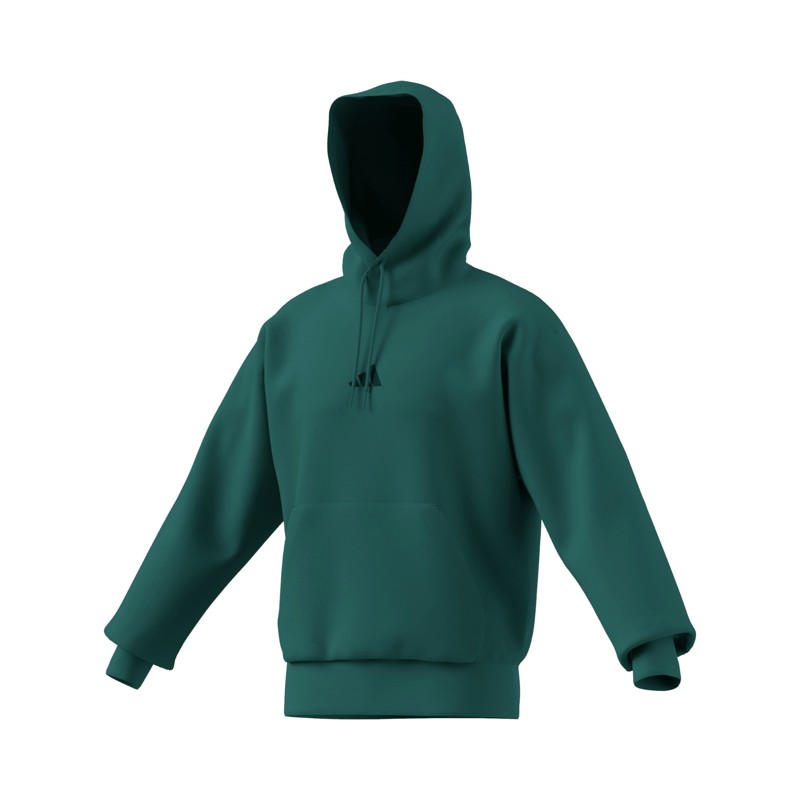 Felpa in cotone, collo con cappuccio e coulisse, spalle regolari, maniche lunghe, polsini elasticizzati, logo trifoglio stampato a contrasto, orlo dritto.