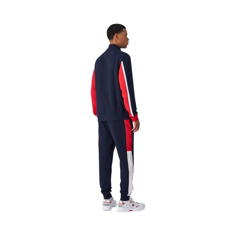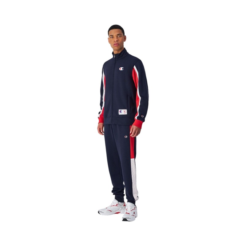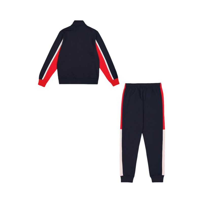 Set due pezzi in cotone, felpa con zip e logo con profili a contrasto, pantalone in cotone felpato.