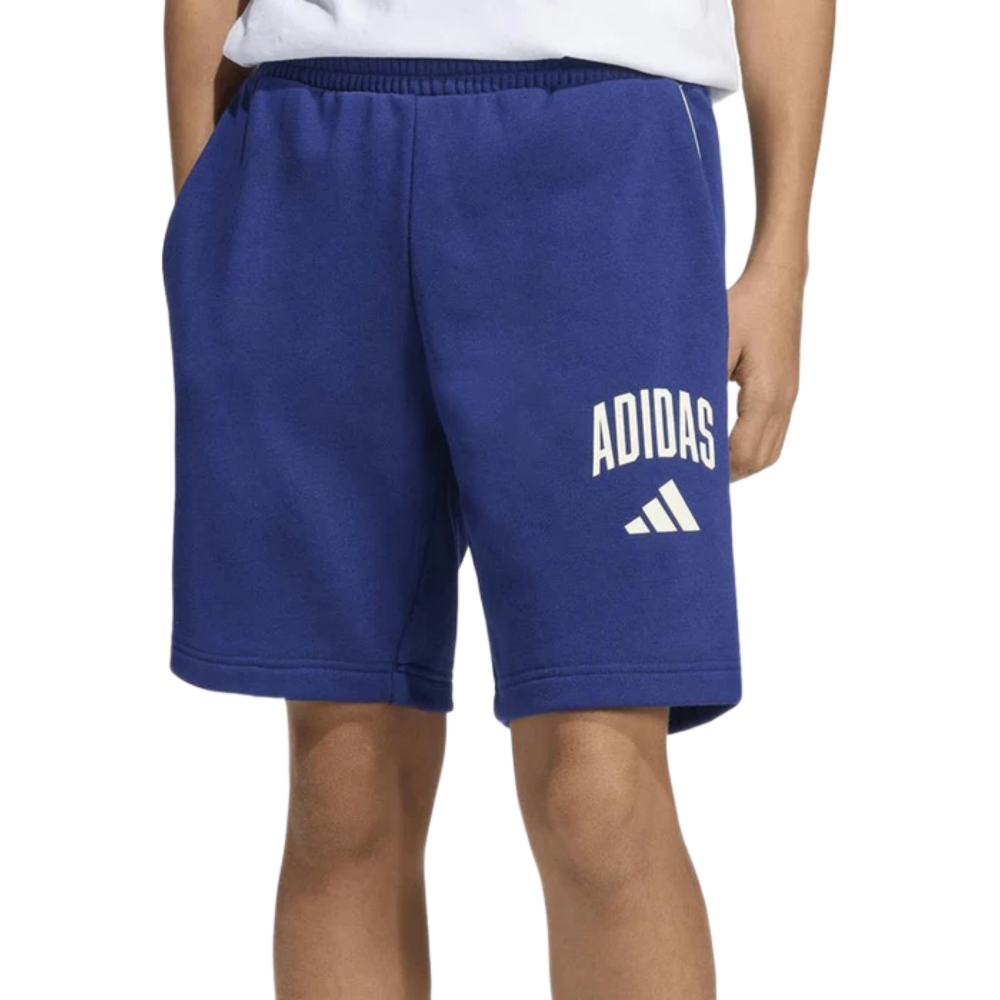 Short junior adidas in cotone French terry, morbidi e pratici per sport e tempo libero. Il colore blu li rende facili da abbinare ogni giorno, perfetti con t-shirt e felpe per un look casual e dinamico.