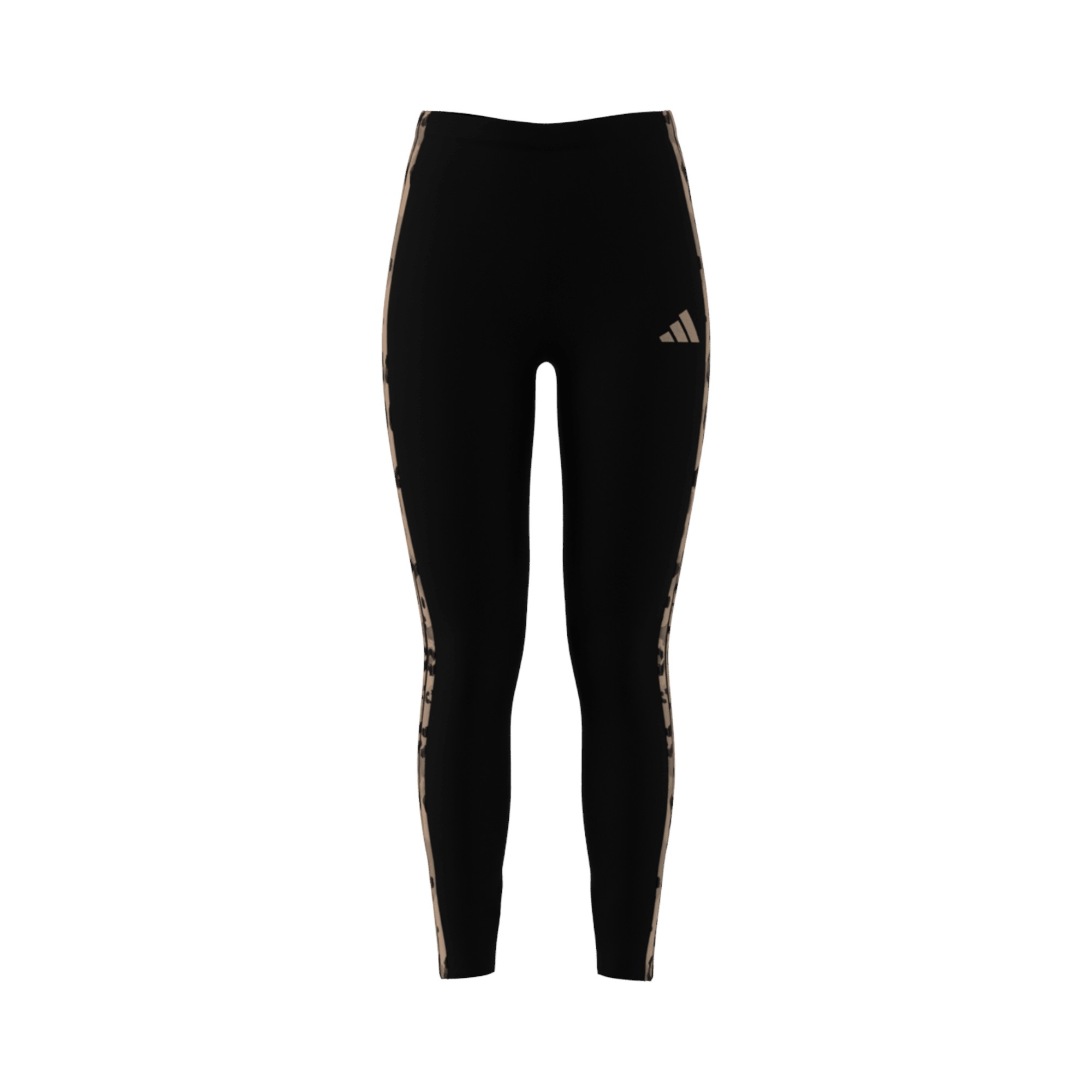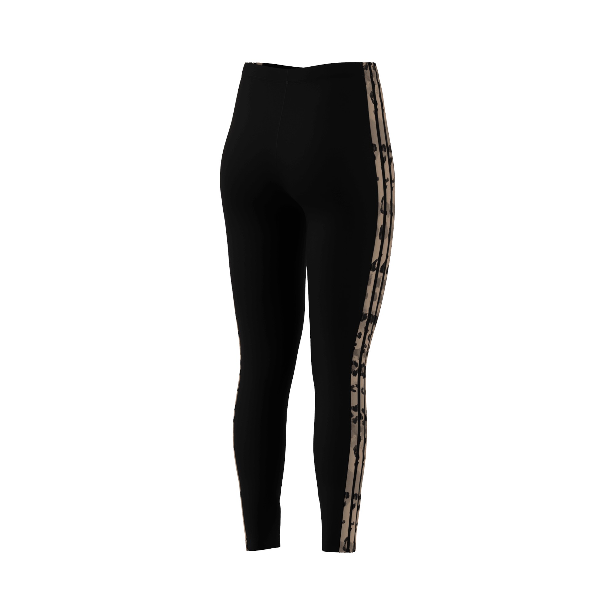 Leggings aderente in cotone jersey, 3 iconiche stripes laterali con stampa animalier, logo trifoglio stampato a contrasto, gamba aderente, orlo dritto.