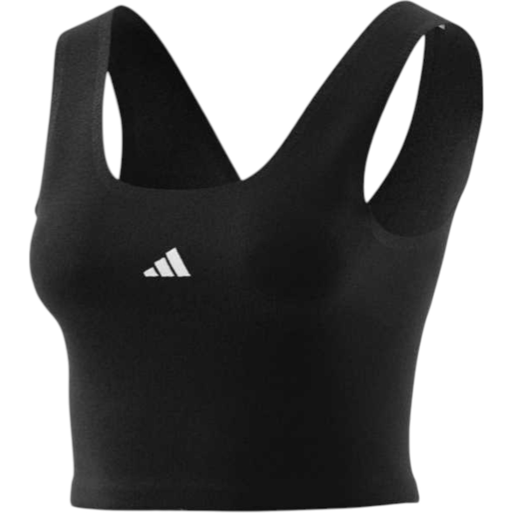 Canotta adidas in jersey di cotone, morbida e confortevole, perfetta per sport e tempo libero. Il design nero con dettagli bianchi dona uno stile essenziale e versatile, ideale per allenamenti leggeri e outfit casual.