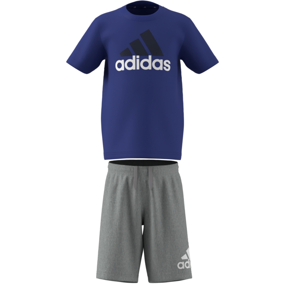 Set 2 pezzi adidas in morbido jersey di cotone blu con dettagli multicolor e grigio medio, offre comfort e libertà di movimento ideali per i più piccoli. Perfetto per le giornate di gioco o il tempo libero, combina uno stile sportivo e allegro con la qualità tipica del marchio.