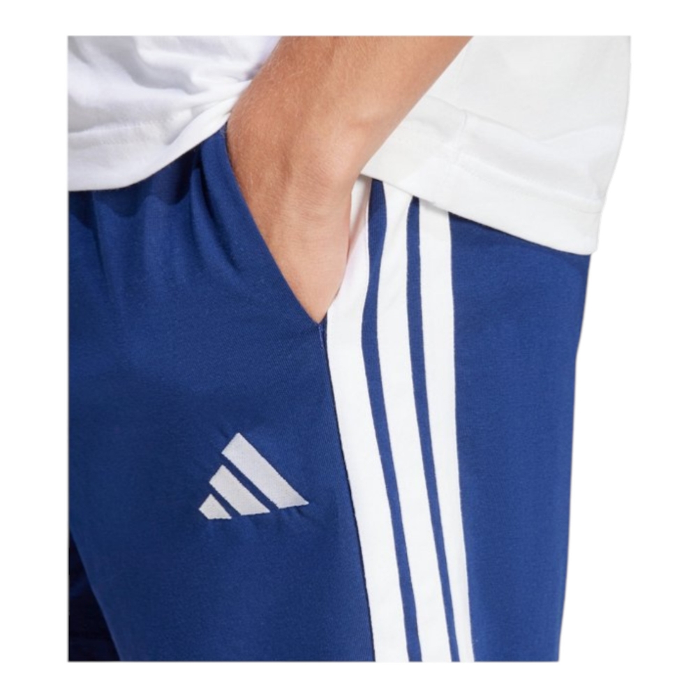 Short adidas in jersey di cotone, in blu con dettagli bianchi e stile 3-Stripes, perfetti per allenamento e tempo libero. Il tessuto morbido e leggero assicura comfort quotidiano e libertà di movimento, ideale da abbinare a t-shirt e felpe per un look sportivo essenziale.