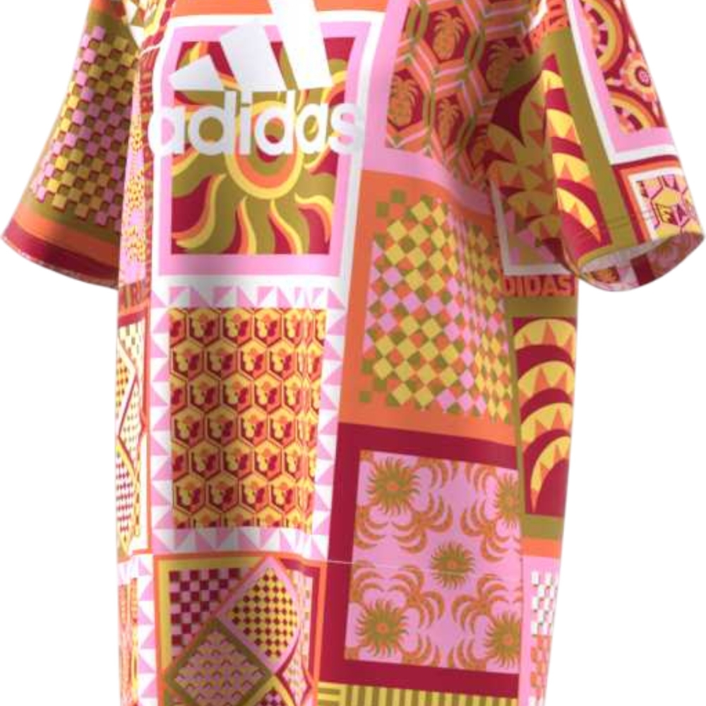 Abito adidas in morbido jersey di cotone, leggero e confortevole. La combinazione di oro e rosa dona un look sportivo e femminile, perfetto per il tempo libero.