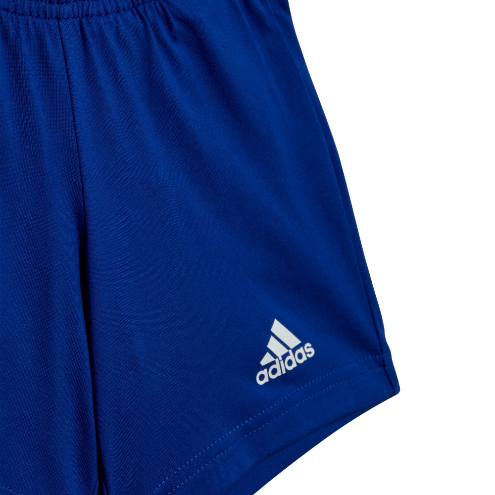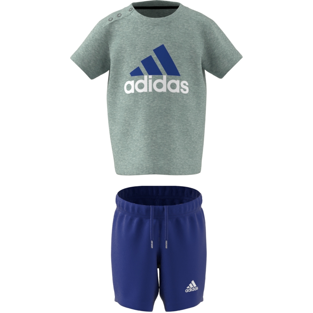 Set adidas in morbido jersey di cotone, comodo e pratico per i più piccoli. La combinazione di grigio e blu regala uno stile sportivo e moderno, perfetto per ogni momento di gioco.