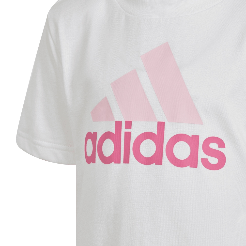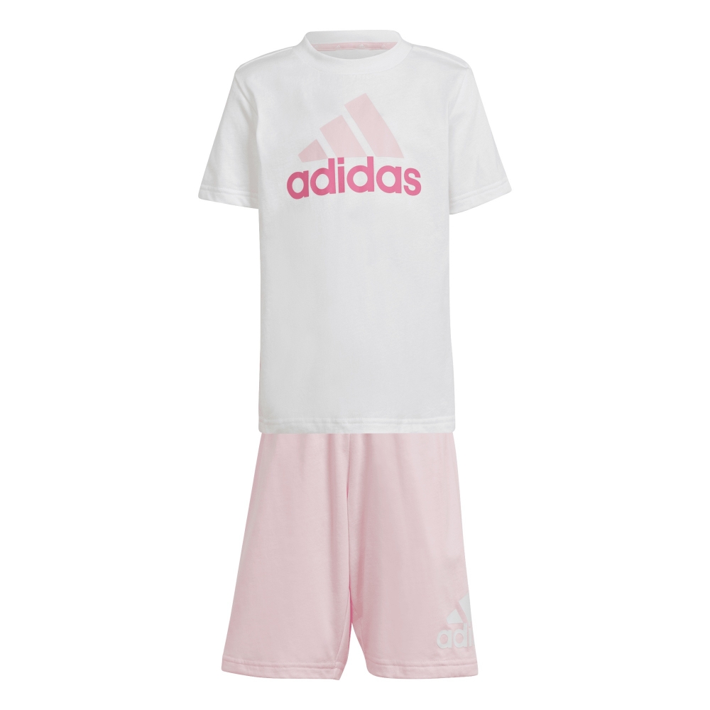Set 2 pezzi di adidas è un completo da bambina perfetto per le giornate attive e di gioco. Realizzato in morbido cotone jersey, offre leggerezza e comfort sulla pelle. La t-shirt bianca con logo rosa chiaro e i pantaloncini coordinati creano un look sportivo e fresco, ideale per il tempo libero o le attività estive.