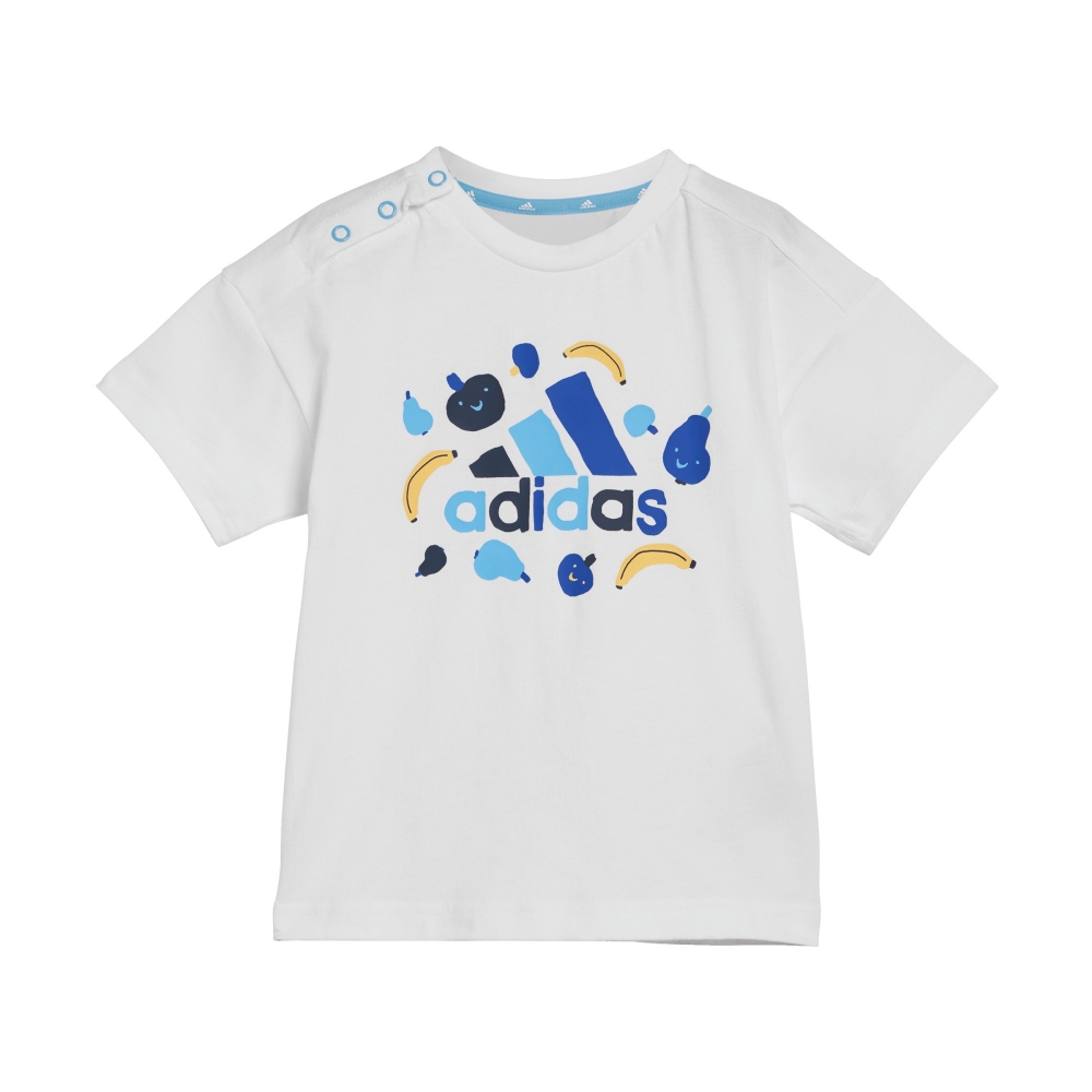 Set adidas in morbido jersey di cotone, leggero e confortevole per il massimo comfort dei più piccoli. Il bianco con dettagli blu dona uno stile fresco e allegro, perfetto per la stagione.
