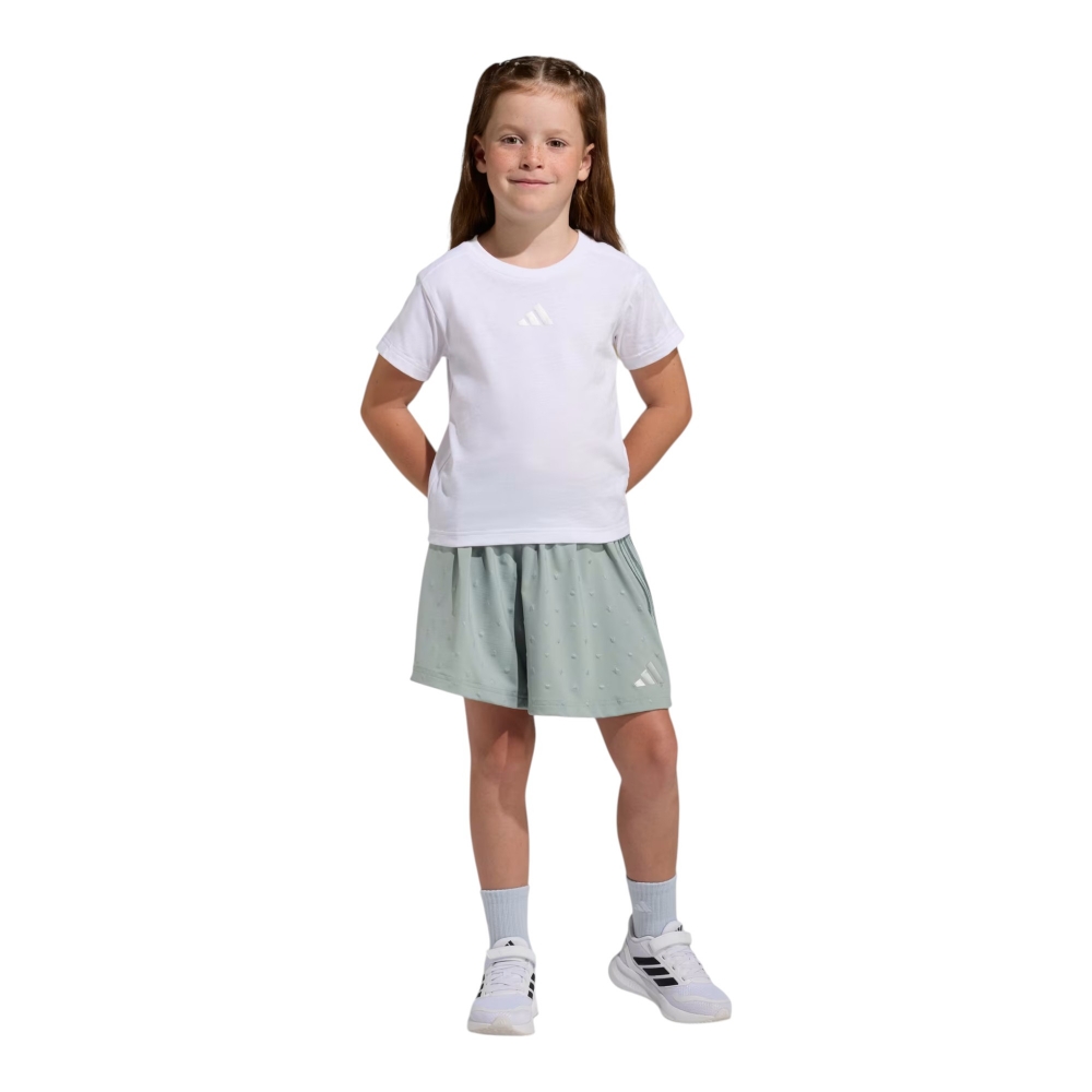 Il completo adidas LG Glam Set è pensato per offrire comfort quotidiano e uno stile sportivo dal gusto luminoso e contemporaneo. Realizzato in morbido cotone jersey, assicura una piacevole sensazione sulla pelle e una vestibilità pratica, ideale per accompagnare i più piccoli nei momenti di gioco, nel tempo libero e nelle attività di ogni giorno. La tonalità bianca, arricchita da dettagli silver metallizzato, dona al completo un aspetto fresco e moderno, perfetto per creare outfit comodi ma curati. Questo set adidas da bambino unisce praticità, morbidezza e design sportivo, diventando una scelta versatile per ogni stagione.