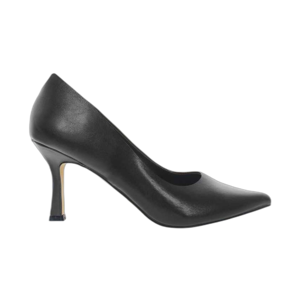 Decolletè in similpelle, punta ovale, tacco a stiletto, tallone rinforzato, suola in cuoio.