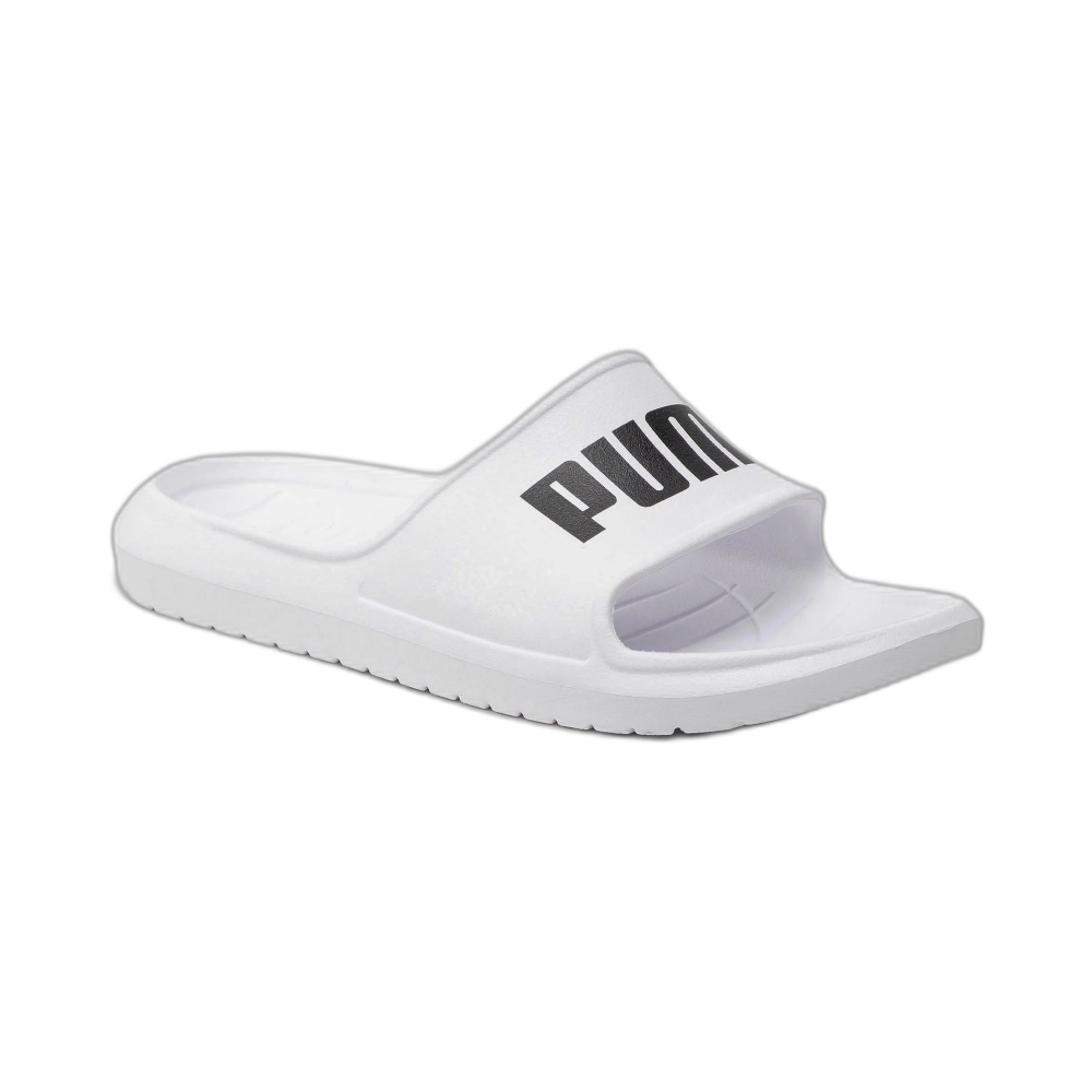 Ciabatte in gomma, fascia con logo a contrasto, suola in gomma.