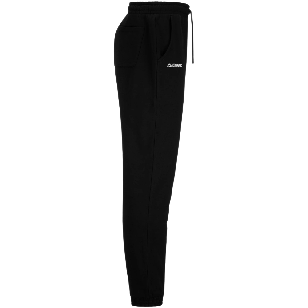 Pantalone jogger Kappa neri in felpa morbida, ideali per sport e tempo libero. Il fondo con polsini assicura una vestibilità stabile e un look essenziale, perfetto per l’uso quotidiano.