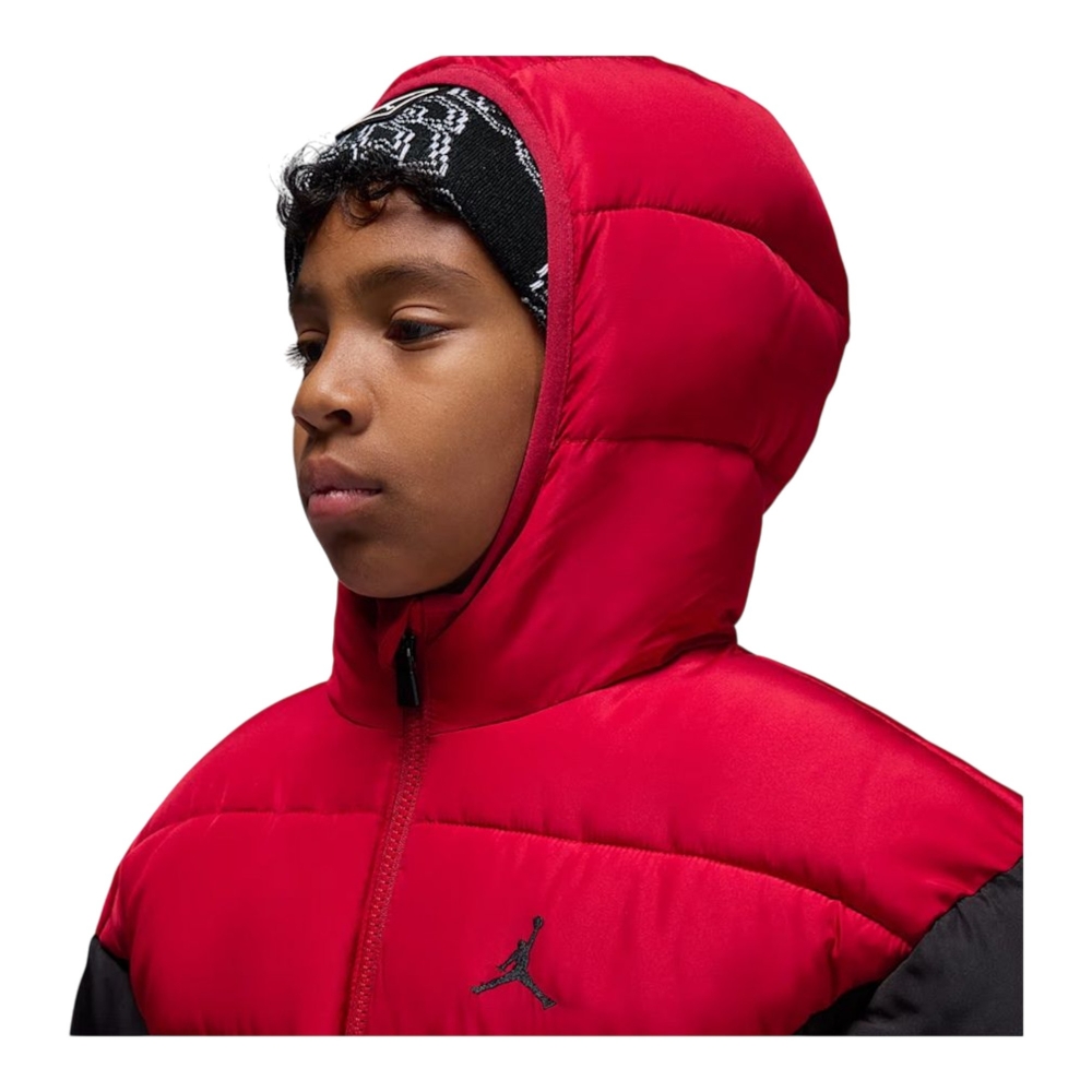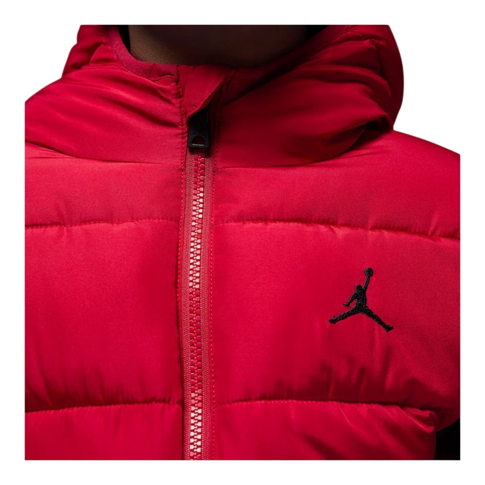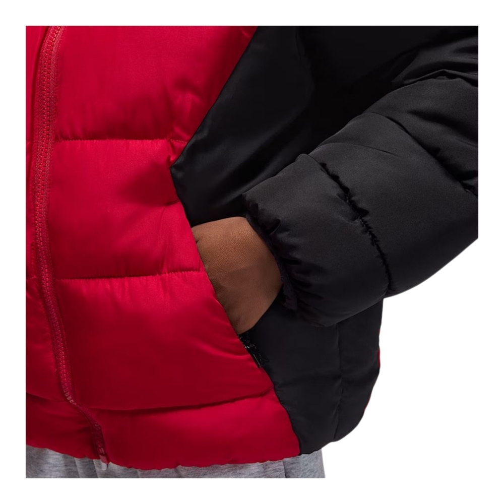 è un capo dallo stile sportivo e deciso, pensato per i ragazzi che vogliono affrontare la stagione fredda con grinta e comfort. Realizzato in tessuto tecnico imbottito, nel vivace contrasto rosso gym e nero, offre un’eccellente protezione dal freddo grazie alla sua costruzione