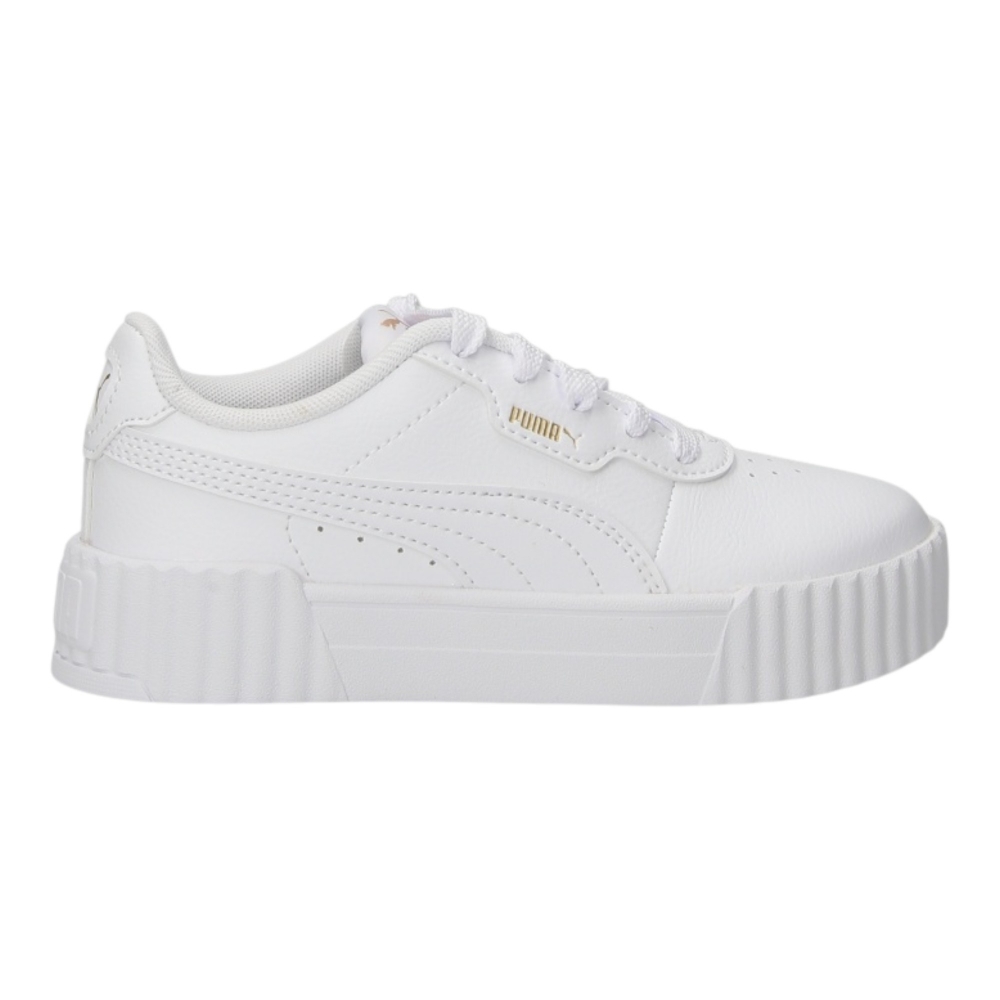 Le sneakers Puma Carina sono perfette per lo sport e il tempo libero, con uno stile pulito e versatile. Realizzate in similpelle, offrono comfort e praticità, mentre la finitura bianca con dettagli oro dona un tocco luminoso e moderno.