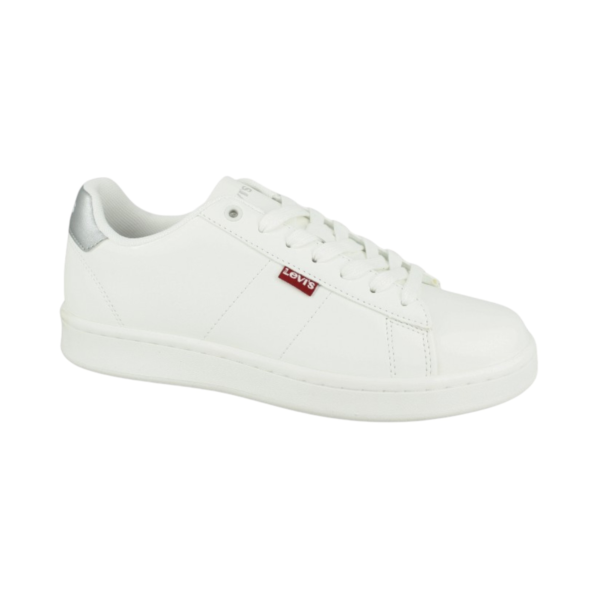 Sneakers in similpelle, linguetta con logo, chiusura con lacci, dettaglio a contrasto posteriore, suola in gomma.