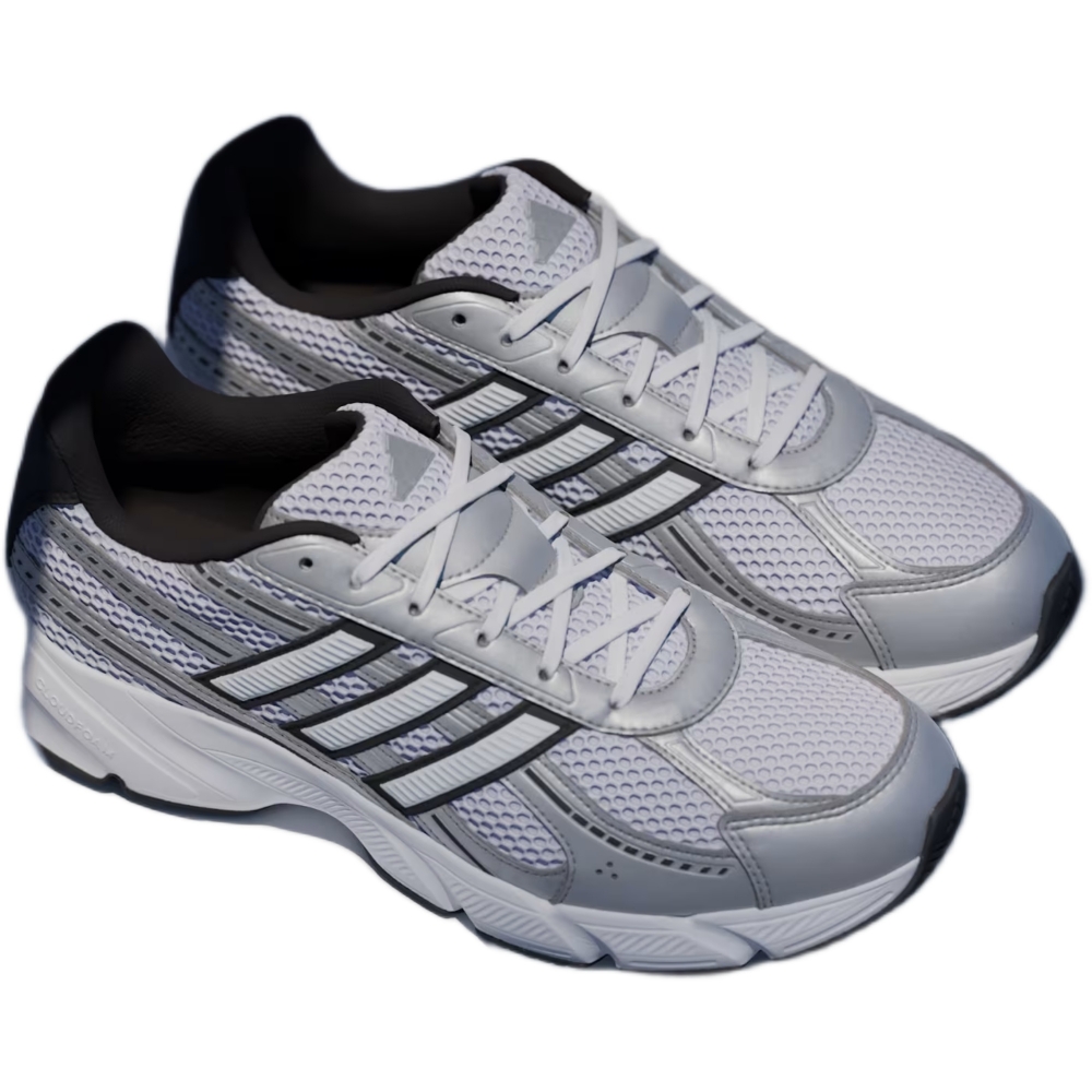 Le scarpe adidas Techno Chaos 2000 bianche e nere sono perfette per uno stile sportivo e urbano da indossare ogni giorno. Realizzate in mesh con dettagli in pelle sintetica, offrono leggerezza, comfort e un look dinamico ideale per il tempo libero.