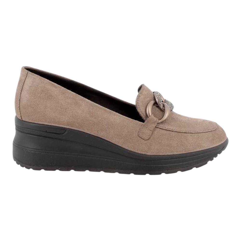 modello Ronda rappresentano una perfetta fusione tra eleganza classica e comfort moderno. Realizzati in morbido camoscio color fango, offrono una calzata avvolgente e naturale, ideale per un uso quotidiano o per completare look sofisticati con un tocco di sobria raffinatezza. Il design senza tempo, arricchito da una linea pulita e armoniosa, è abbinato a una suola flessibile e leggera che assicura stabilità e benessere durante la camminata. Perfetti per la stagione invernale, i