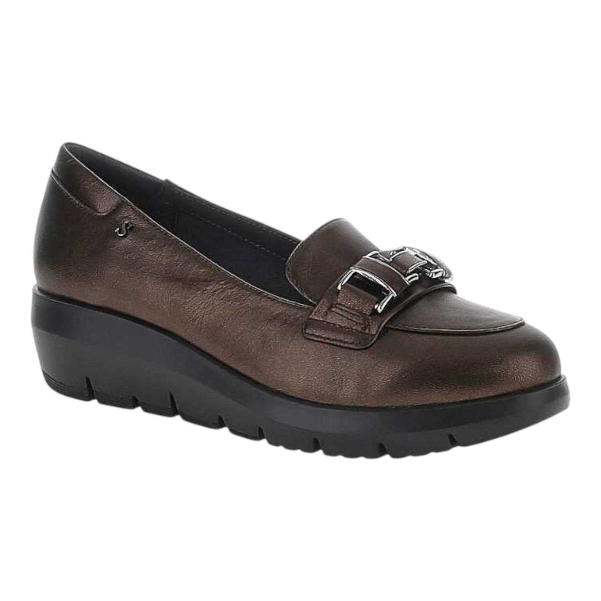 Mocassino in vera pelle, punta tonda, linguetta, dettaglio in metallo applicato, tallone rinforzato, suola in gomma.