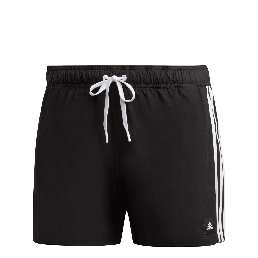 offrono comfort e libertà di movimento dentro e fuori dall’acqua. Realizzati in tessuto plain weave leggero e ad asciugatura rapida, garantiscono praticità e resistenza. Il design nero con le iconiche tre strisce bianche aggiunge un tocco sportivo e intramontabile, perfetto per la spiaggia o la piscina.