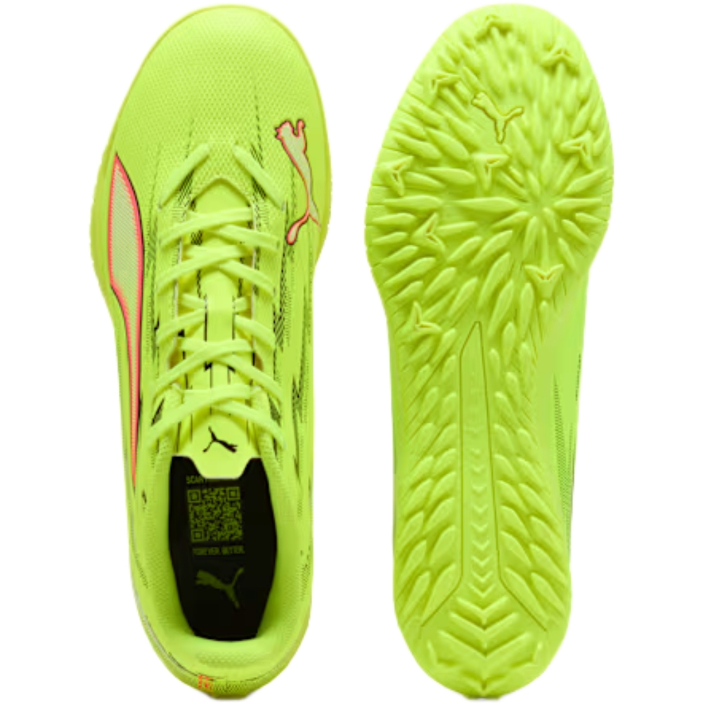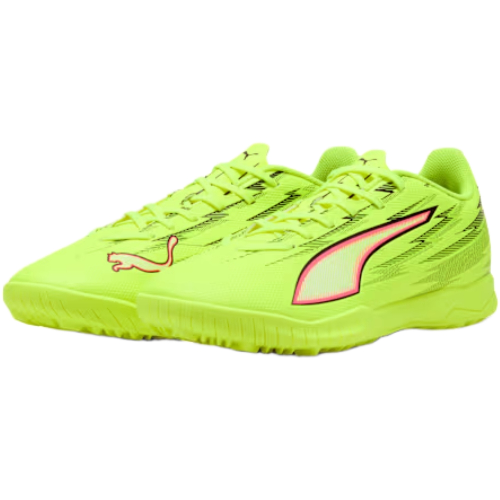 Le Puma Ultra sono scarpe da calcio pensate per velocità e agilità su superfici sintetiche, grazie alla suola TT che favorisce trazione e rapidità nei cambi di direzione. La tomaia in similpelle offre una calzata comoda e reattiva, ideale per allenamenti e partite a ritmo alto. Il mix di colori giallo con dettagli neri, rossi e lime aggiunge un look energico e ben visibile in campo, perfetto per chi vuole farsi notare con uno stile deciso.