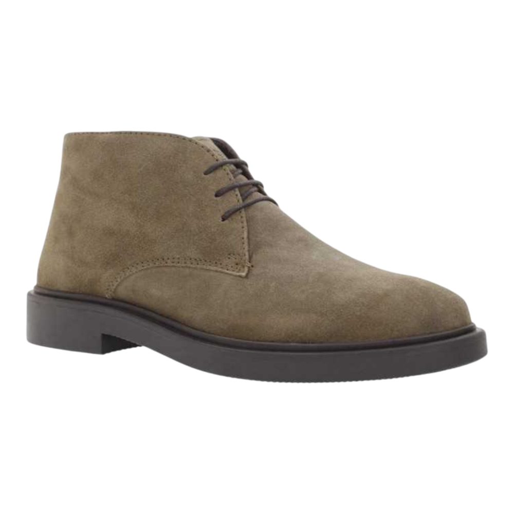 Polacchino in camoscio, linguetta, chiusura con lacci, punta tonda, tallone rinforzato, suola in gomma.