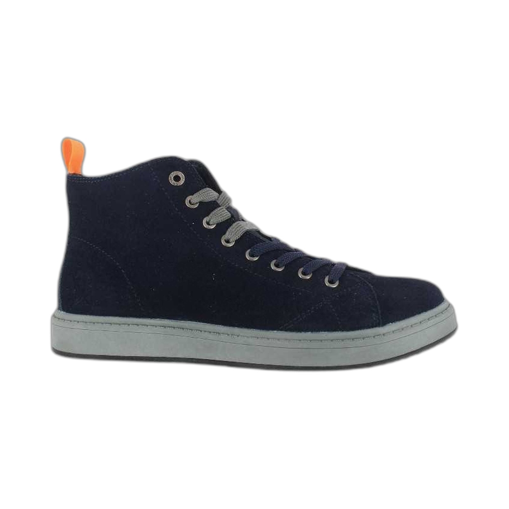Polacchino in camoscio, linguetta, chiusura con lacci, punta tonda, tallone rinforzato, suola in gomma.