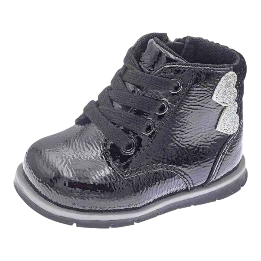 in vernice nera sono pensate per i bimbi che gattonano, offrendo morbidezza e sostegno. Il materiale lucido dona un tocco elegante, mentre la suola flessibile e antiscivolo garantisce sicurezza e comfort in ogni movimento.