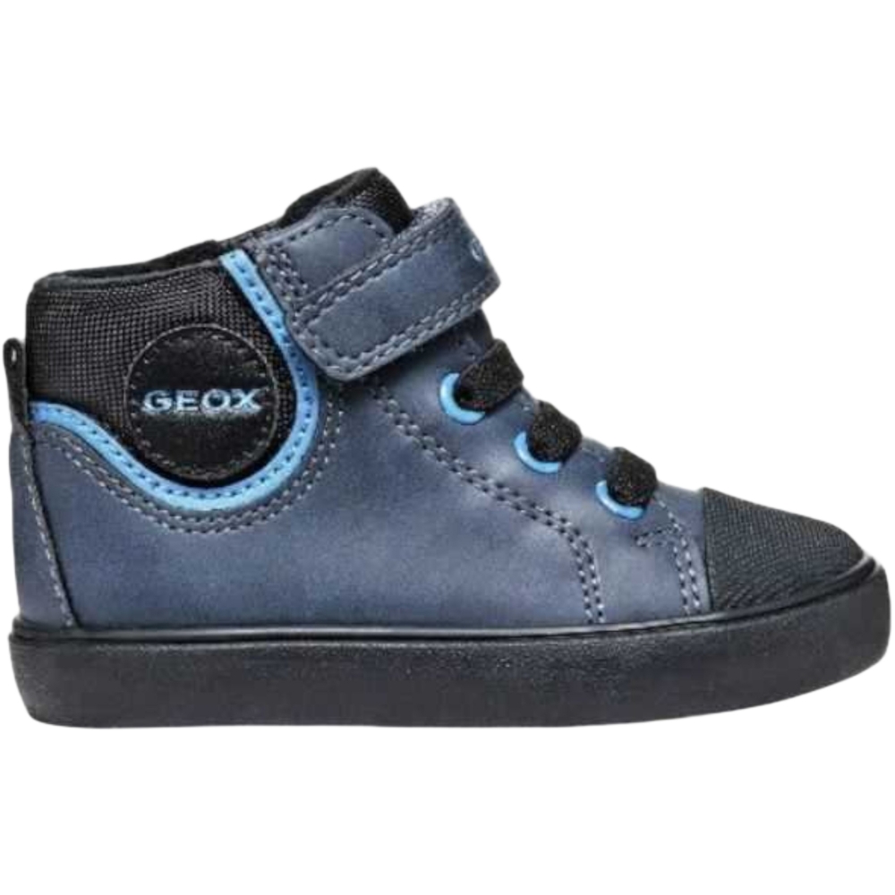 Polacchino in simil nubuk e tessuto, linguetta, chiusura con lacci, fettuccia in velcro con logo a contrasto, punta tonda, patch logo applicata laterale, suola in gomma.