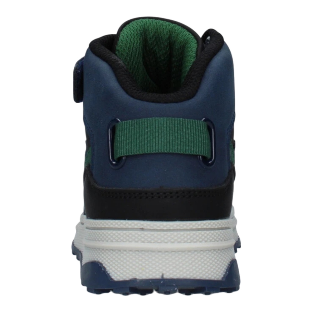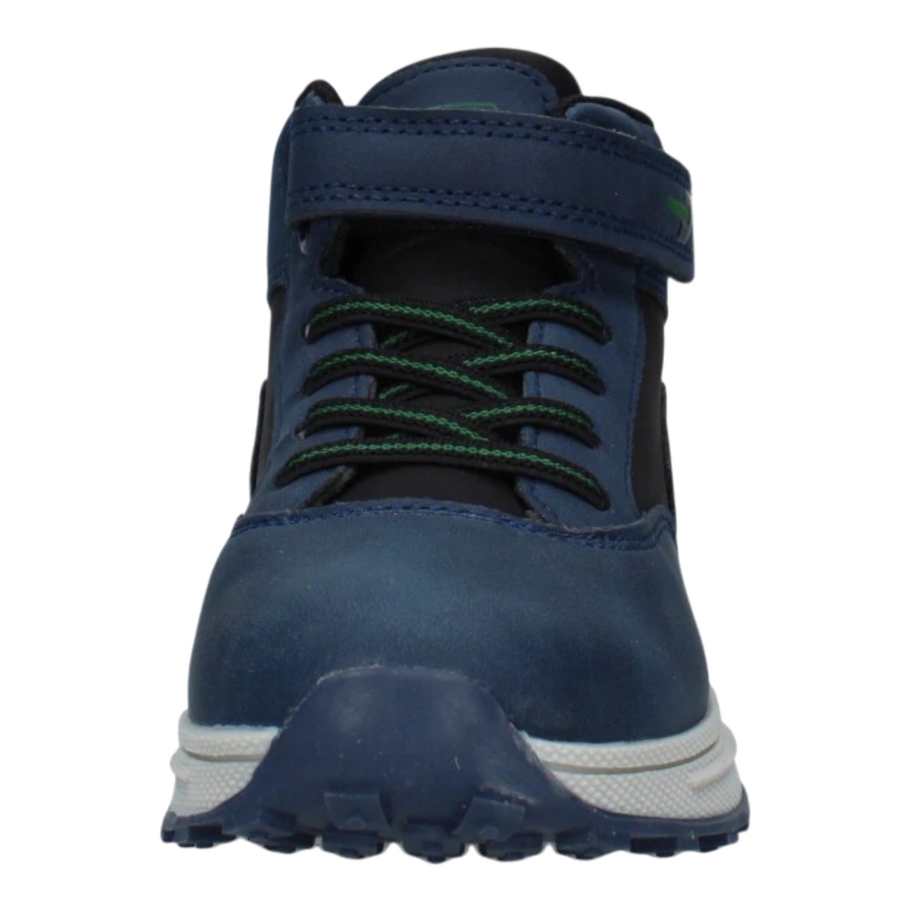 in similpelle effetto nabuk, colore blu navy con inserti neri. Stile sportivo e resistente, pensato per l’inverno dei ragazzi.
