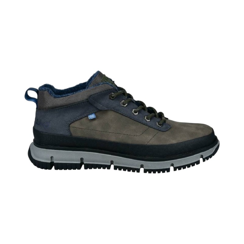 Polacchino in nappa, linguetta con patch logo, chiusura con lacci, suola ammortizzazione in gomma.