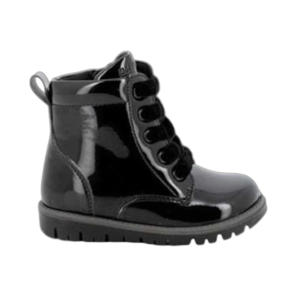 Anfibi primi passi in vernice pensati per offrire il massimo comfort e supporto. Con una suola morbida e flessibile, garantiscono una camminata naturale e sicura, adattandosi perfettamente ai movimenti del piede in crescita, chiusura con zip laterale permette di indossarli facilmente, mentre il design resistente assicura durata e protezione in ogni avventura quotidiana.