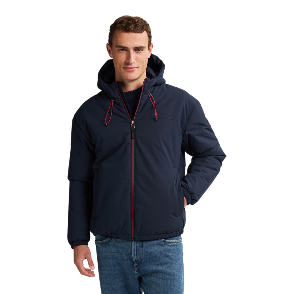 è un modello sportivo e versatile, realizzato in poliestere resistente e leggero. Il tono blu navy aggiunge un tocco di eleganza casual, ideale per completare look pratici e contemporanei nelle mezze stagioni.
