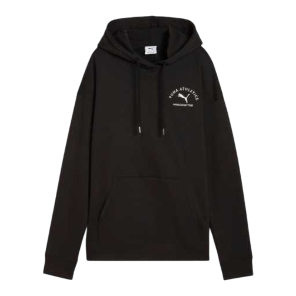 Felpa in cotone, collo con cappuccio e coulisse, spalle regolari, maniche lunghe, logo a contrasto, tasca a marsupio, orlo dritto.