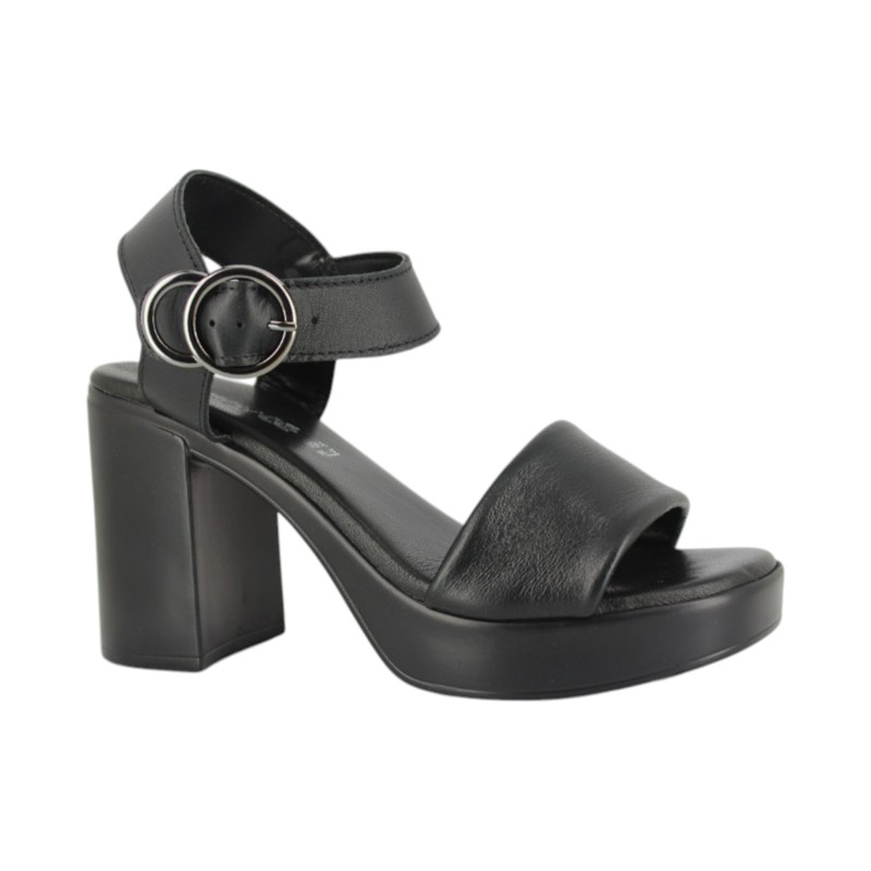 Sandalo in morbida pelle nappa, fascia, cinturino alla caviglia con fibbia regolabile, sottopiede in vera pelle, suola con tacco.