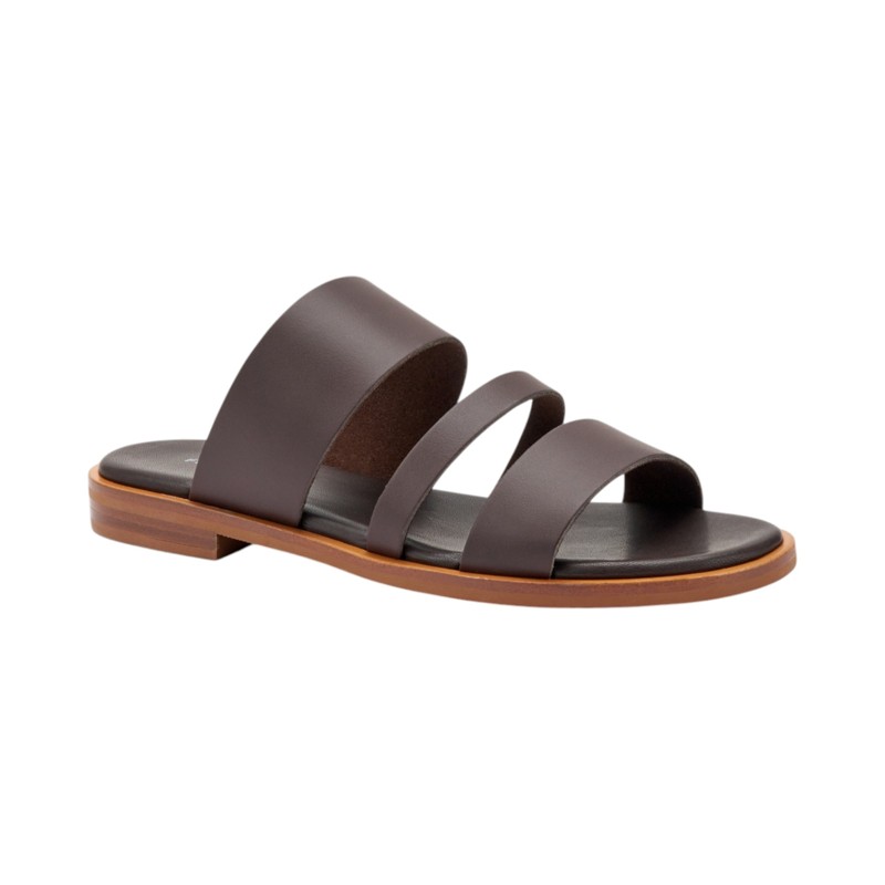 Sandalo in vera pelle, 3 fettucce, sottopiede in pelle, suola in gomma.