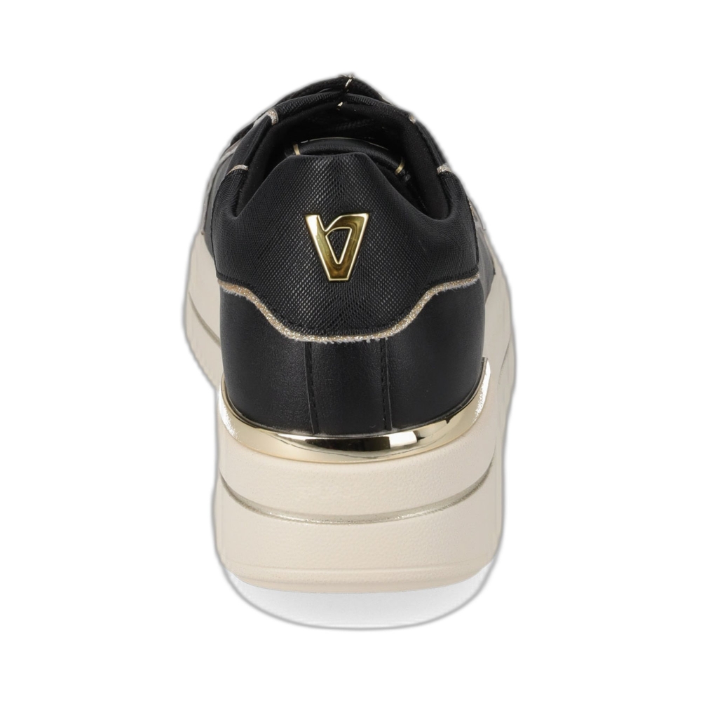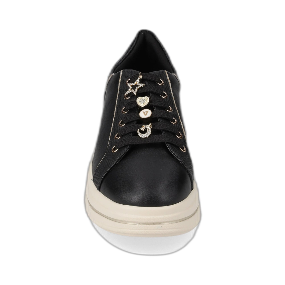 Sneakers in similpelle, linguetta con patch logo, chiusura con lacci e charms con strass applicati, punta tonda, tallone rinforzato, suola in gomma.