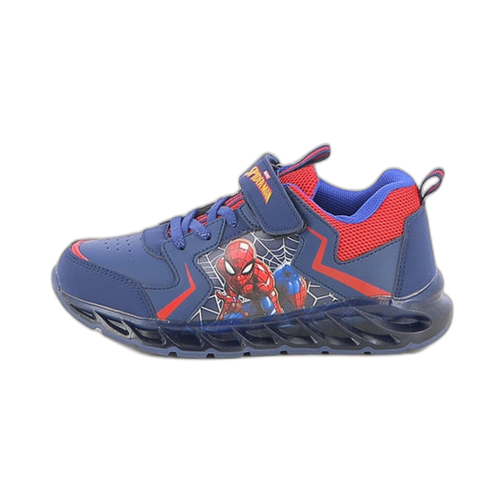 Sneakers in similpelle e mesh, linguetta con tirante anteriore, chiusura con lacci, fettuccia in velcro con logo, stampa grafica laterale di Spiderman, tallone rinforzato, suola in gomma.