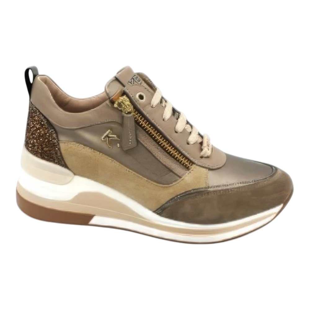 Sneakers in similpelle laminata e camoscio, linguetta con patch logo, chiusura con lacci, zip laterale, logo in metallo laterale, punta tonda, suola in gomma.