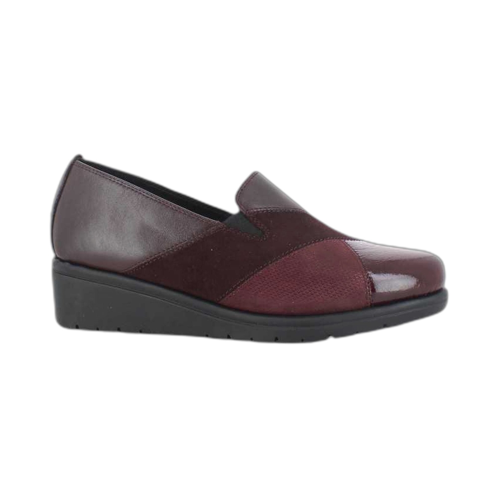 Mocassino in vera pelle e vernice, punta tonda, tallone rinforzato, suola in gomma.