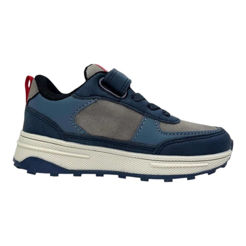 Sneakers in simil nubuk, linguetta con patch logo, chiusura con lacci, fettuccia in velcro, punta tonda, tallone rinforzato, suola in gomma.