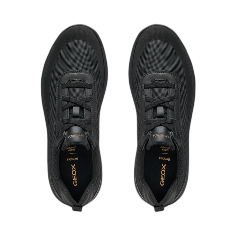 Le sneakers Geox Spherica in tessuto e nappa nera offrono uno stile moderno e un comfort superiore. Grazie alla tecnologia traspirante Geox e all’ammortizzazione avanzata, garantiscono leggerezza e benessere ideali per un uso quotidiano dinamico e versatile.