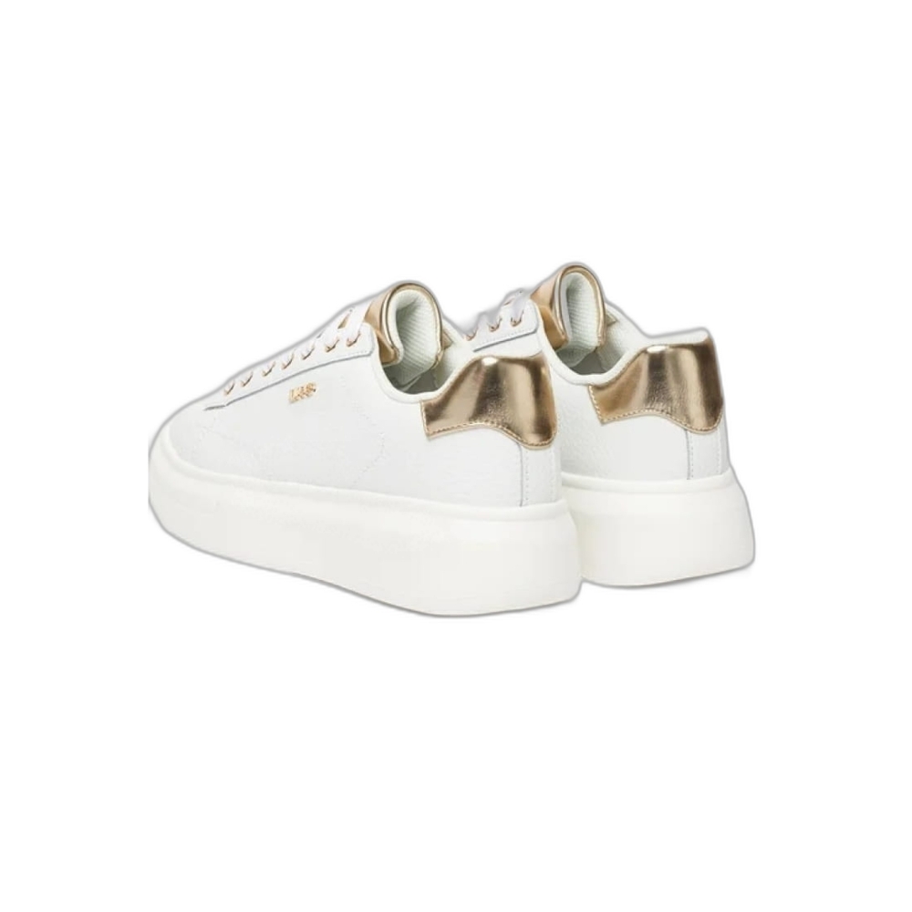 Sneakers in vera pelle, linguetta in similpelle laminata, chiusura con lacci, logo in metallo laterale a contrasto, punta tonda, tallone rinforzato, suola in gomma.