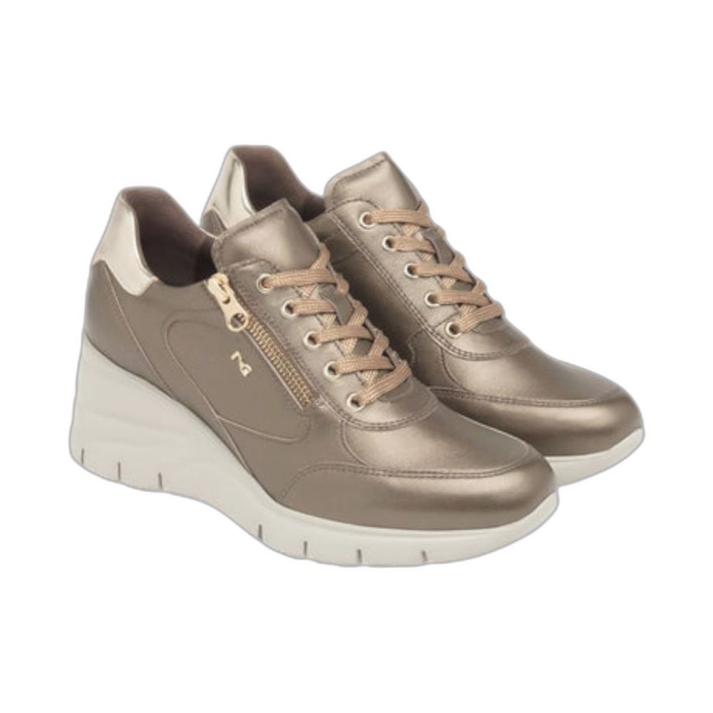 Sneakers in similpelle laminata, punta tonda, linguetta con patch logo, logo laterale in metallo, punta tonda, tallone rinforzato, suola in gomma.