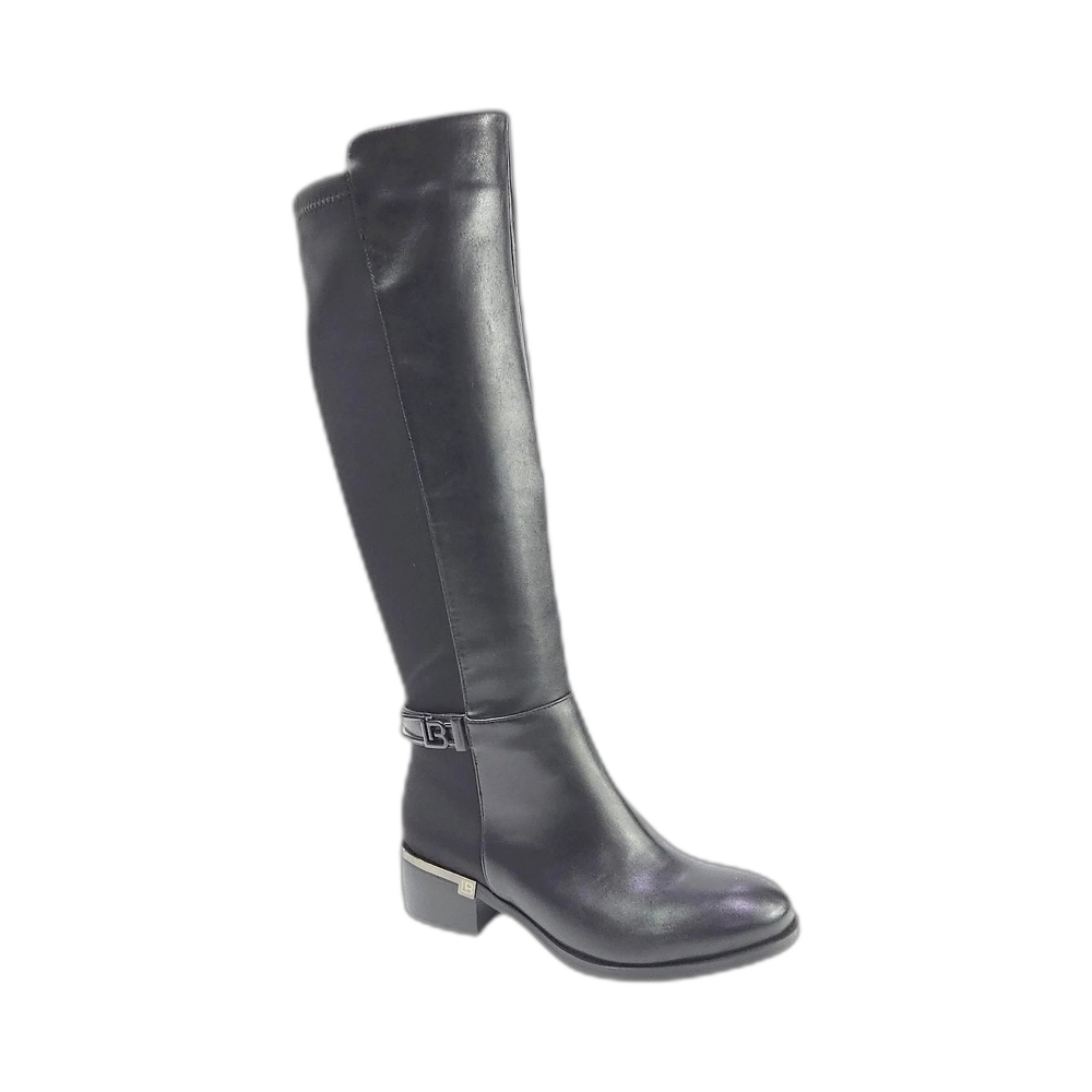 Lo stivale BIAGIOTTI in nappa nera con inserti elasticizzati in nylon è un modello elegante e contemporaneo, perfetto per affrontare la stagione invernale con stile e praticità. Realizzato in morbida pelle di capretto, si distingue per la texture liscia e raffinata che avvolge la gamba con una calzata confortevole e naturale. Gli inserti elastici laterali in nylon aggiungono flessibilità e aderenza, assicurando una vestibilità impeccabile. Il design minimal, impreziosito dalla lucentezza discreta della nappa, lo rende ideale per completare outfit eleganti o look più casual chic. La suola stabile e il tacco ben proporzionato garantiscono comfort e sicurezza a ogni passo. Uno stivale essenziale e versatile, simbolo di eleganza moderna e qualità firmata BIAGIOTTI.