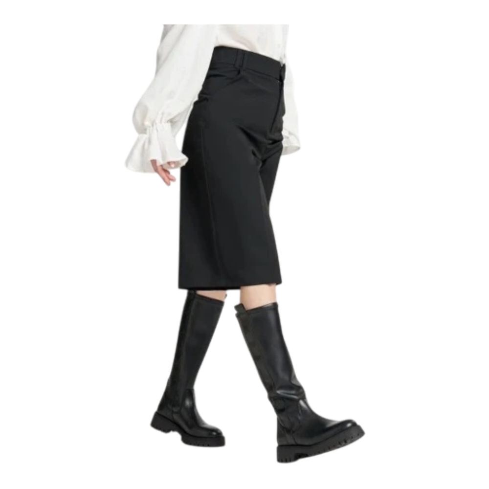 Stivale in vera pelle, gambale alto, punta tonda, tallone rinforzato, suola in gomma.