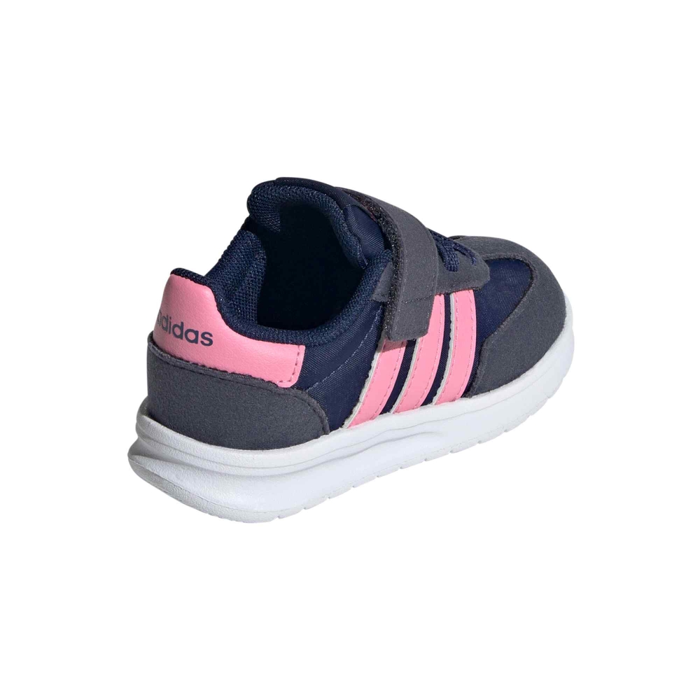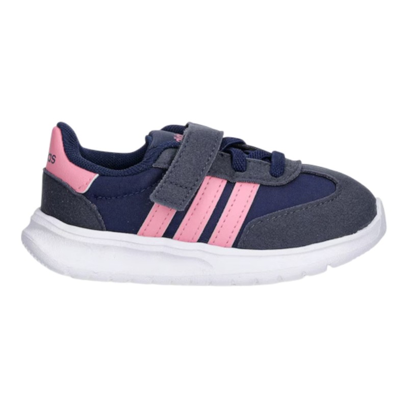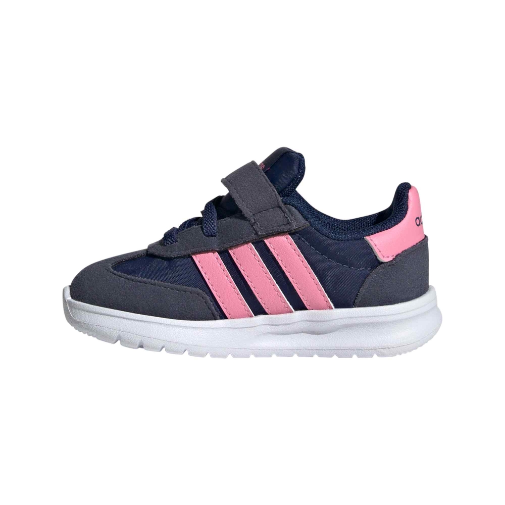 Le adidas Run 70s 2.0 EL I sono sneakers dal fascino rétro pensate per accompagnare i più piccoli nelle loro prime avventure quotidiane. Realizzate in un mix di pelle scamosciata (suede) e tessuto tecnico traspirante, offrono una calzata morbida e confortevole, ideale per il piedino dei bambini. La chiusura con strappi e lacci elastici permette di indossarle facilmente e garantisce una tenuta sicura durante il movimento. La palette dark blue con dettagli bliss pink e navy aggiunge un tocco vivace e moderno, perfetto per ogni look casual o sportivo. Leggere, resistenti e dallo stile intramontabile, queste sneakers riflettono tutta la qualità e l’heritage adidas, unendo comfort, praticità e design in un modello pensato per i piccoli esploratori di oggi.